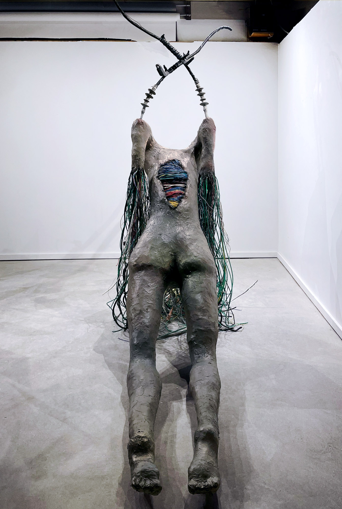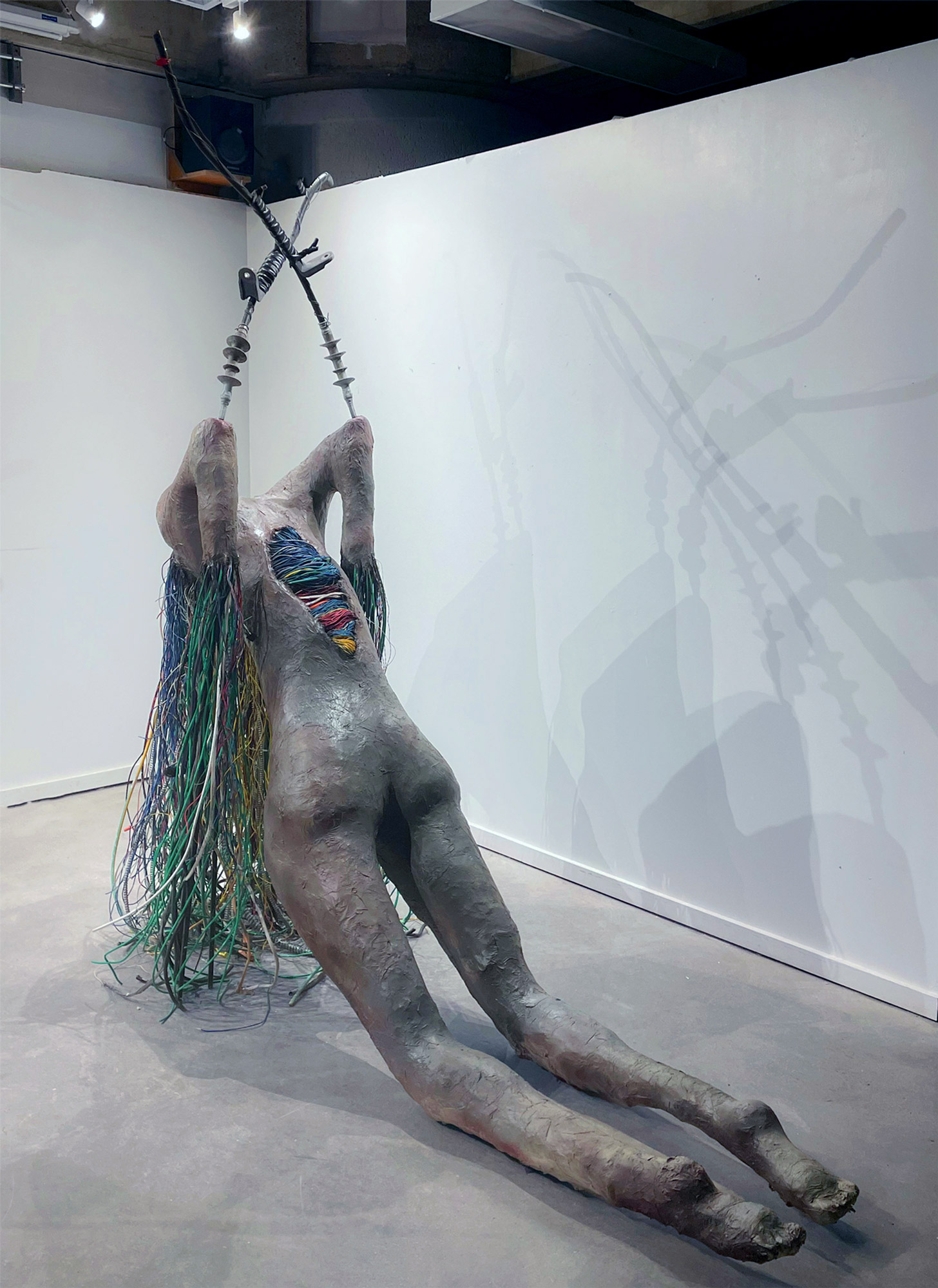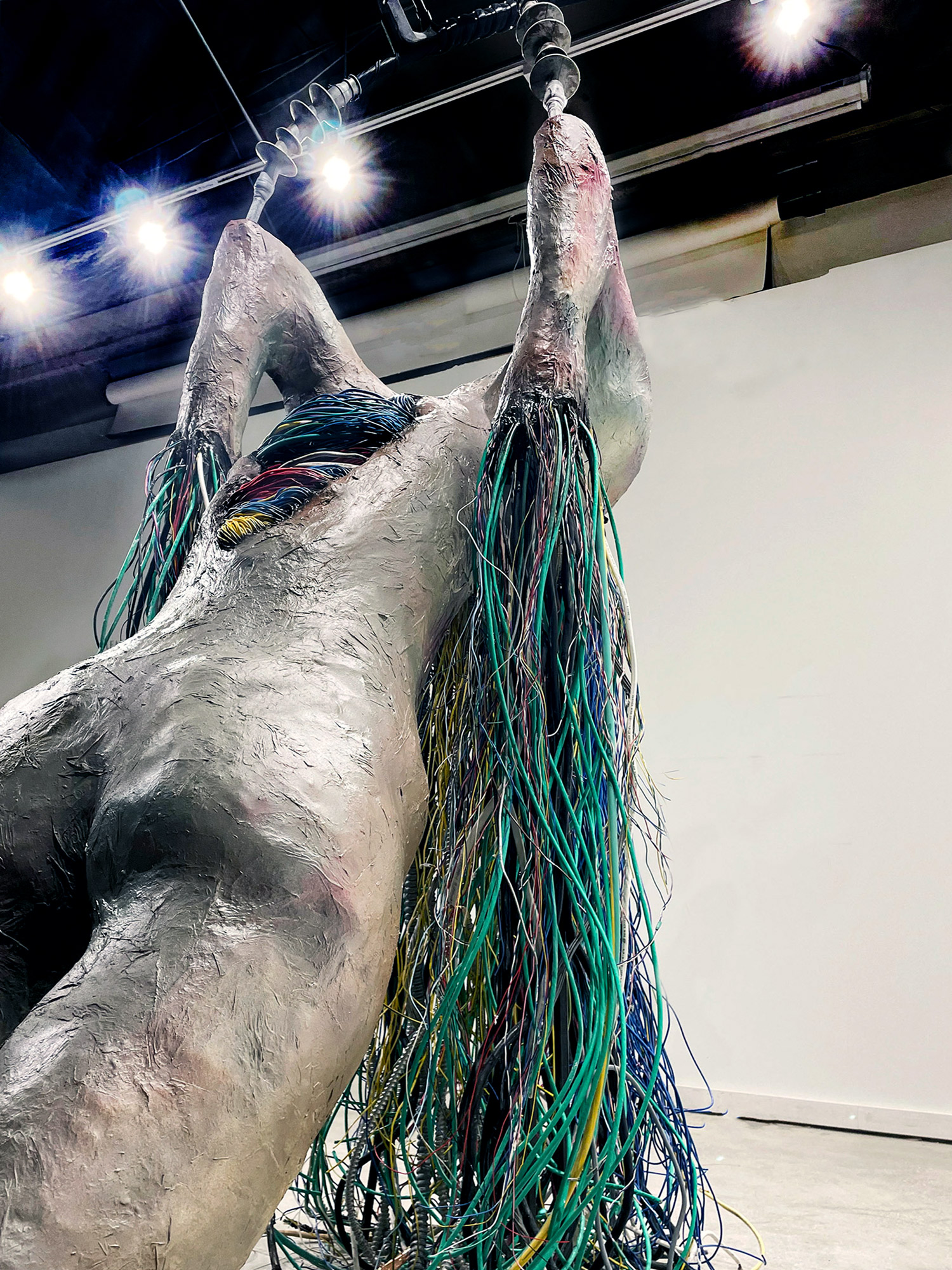 Now, thinking about that episode and narrowing down exactly what caused that fear in me, has inspired this piece. Alongside the work Marthe 1 by Berlinde De Bruyckere from 2008. This sort of metamorphosis stemming from an invasion of the body has lived inside my mind for so long. I hold the concept of the body somewhere between fear and reverence. Not just as a relationship with my own body but the body and how it projects itself as a mold onto everything else in life. The body as a concept and our relationship with it is the lifeblood of creation by humans. We have constructed technology in our own image, giving it a brain, body, heart, and some would argue soul. With that relationship in mind, why do I still view something so similar to myself as something that could potentially be a parasitic invasion? I haven’t unpacked it all, and explaining this relationship is difficult but this train of thought I think will be taking me farther down a rabbit hole. For now it has culminated in this piece, Cable Management.