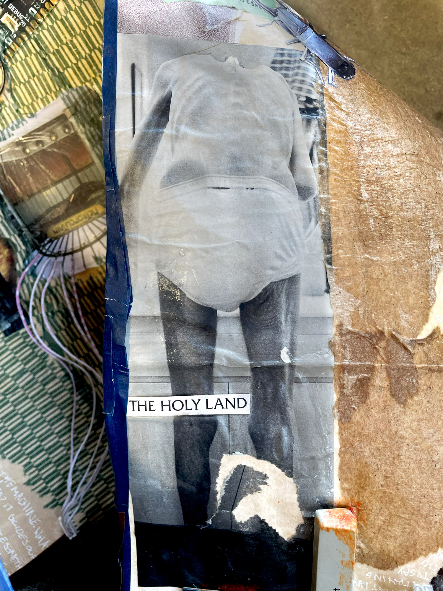 Kurt Schwitters was an unexpected source of inspiration. I was really only looking for visual sources to help with the composition of my collage but he seems to also share my ideological sentiments as well. He was quoted to have said, “In the war [at the machine factory at Wülfen] I discovered my love for the wheel and realized that machines are abstractions of the human spirit”. It makes sense that we would make our creations in our own image, yet many people still feel this alienation of the inorganic. Deborah Kelly is another artist I took visual inspiration from. Her work lies more in the classic style of collage that one may think of – a 60s futurism aesthetic. However, her work also has many similarities to Fridah Kahlo, and distorts the body into creatures wholly her own. Both these artists visually helped me compose my piece as visual inspiration for my composition.