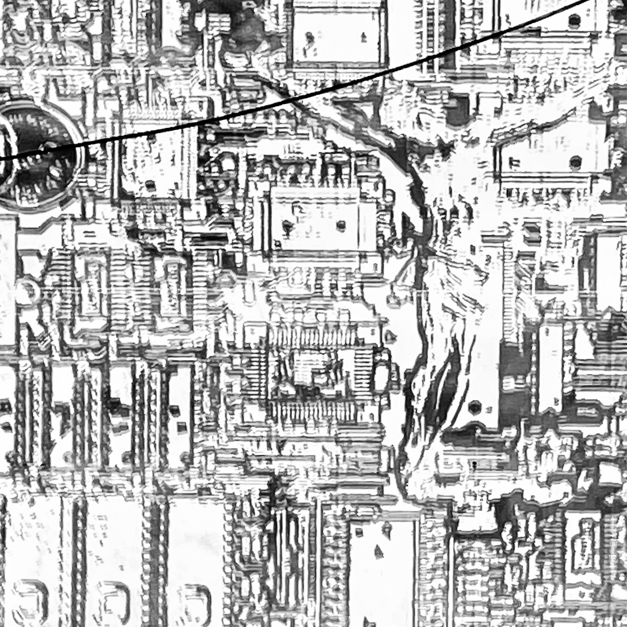 I wanted a simple, straightforward, and fun project that I could learn a set of skills from, and also while following my throughline of thought. I landed on engraving a mirror with the image of a motherboard, one that has the visage of Jesus front and center. The thought process behind the piece was not complex, I started the semester with an exploration into the interwoven connection that is inherent between life and unlife. Beginning with a completely abstract collage that loosely explored the aesthetic of that idea. I moved on to a more representational approach as it became apparent that to get my ideas across conventionally I would need to do so. Similarly I have incorporated the fringes of religious iconography into my work. I’ve never felt like I could claim any belief as my own but I have come to understand that I am intrinsically religious in certain ways. The aesthetic of such figures has been an inspiration and I see a connection between the visage of man created by god and the body of technology created by man. I don’t mean the brain of technology; think deeper into the physicality of it and the language that we have created around the visual representation of digitality.